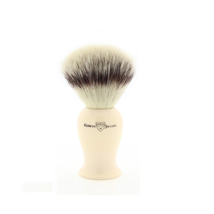 These beautiful Edwin Jagger Imitation Ivory Synthetic Silver Tip Shaving Brushes are made entirely in Sheffield at the Edwin Jagger factory. This brush is a fine example of the master craftsmanship of Europe’s foremost manufacturer of luxury handmade shaving equipment.