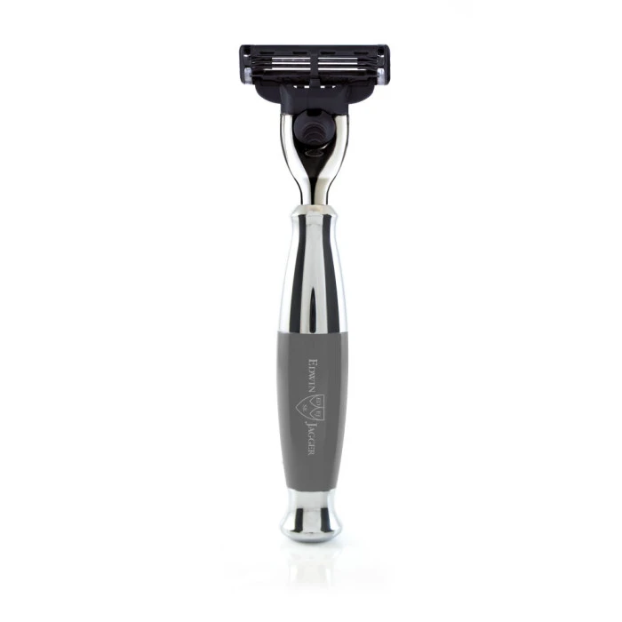 This smart, contemporary razor is fitted with Gillette Mach 3 head. A satisfying weight, the grey handle is finished with bright chrome plated collar and end cap. Mach 3 cartridge systems are very safe and deliver a lubricated, close shave. Replacement blades are available in most supermarkets and chemist shops.
