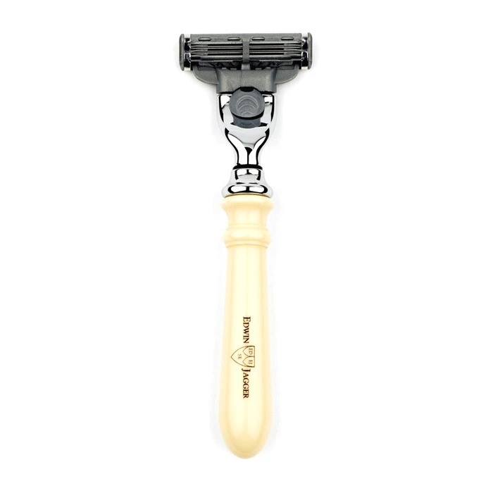 The Loxley Imitation Ivory range is an alternative style to the best selling Edwin Jagger Chatsworth collection. With traditional shape handles Edwin Jagger manufactures this razor in Sheffield from carefully selected, finest quality polyester material that emulates genuine ivory of bygone colonial days. Also features hard chrome plated solid brass collar and blade head.